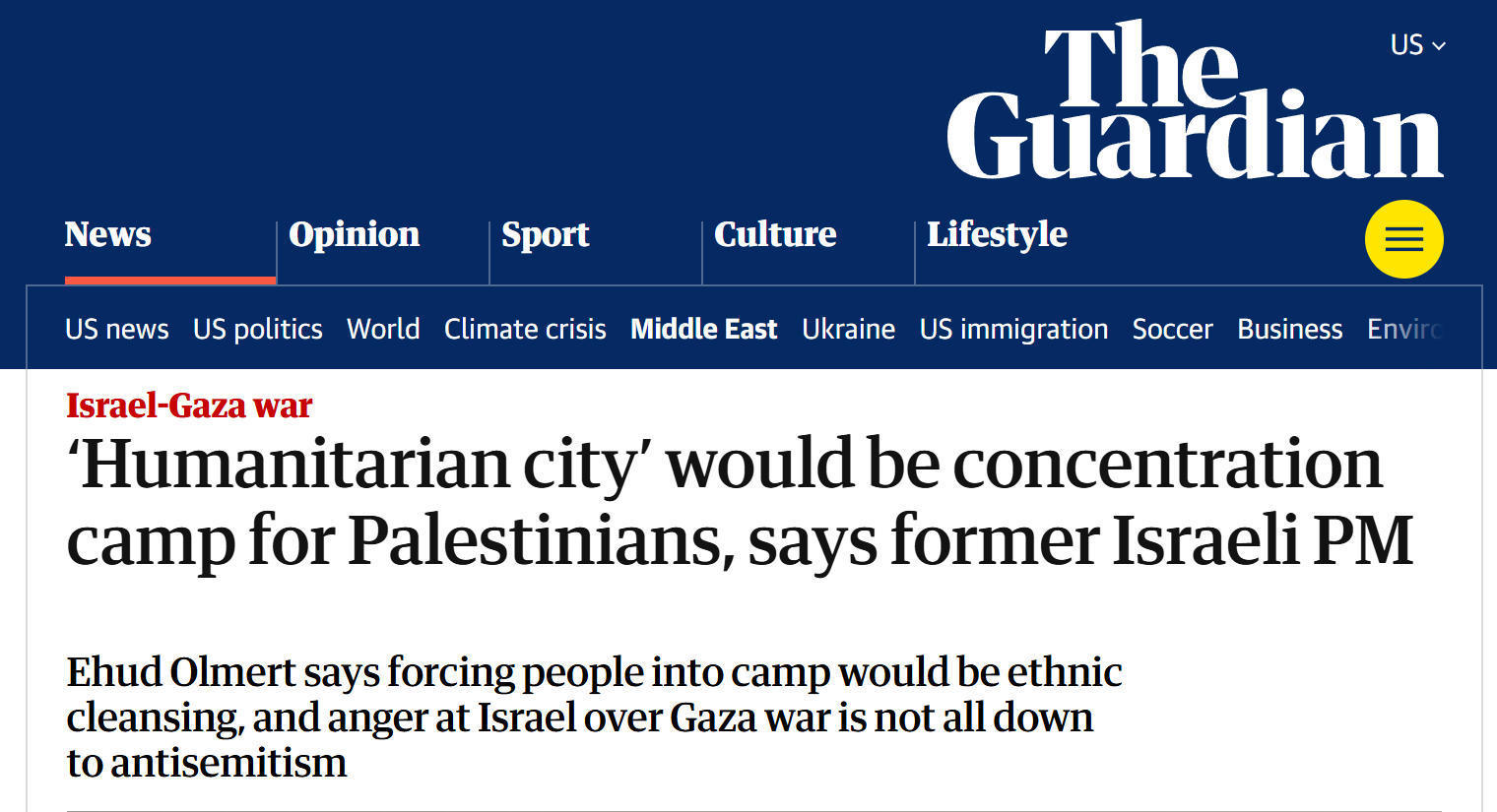 奧爾默特還表示,如果這一計劃實施,這些巴勒斯坦人將被驅(qū)逐到這個“人道主義城”,而這就是種族清洗。
