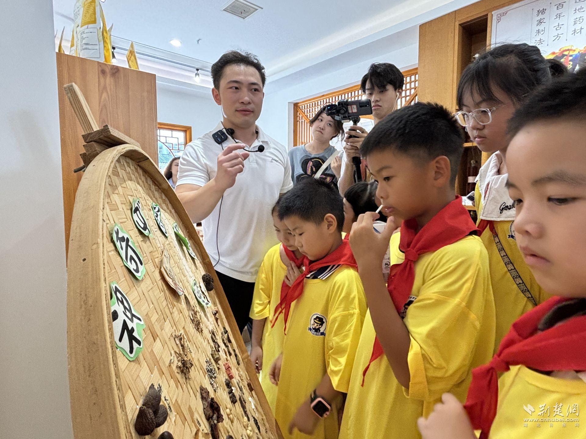 “中藥房現(xiàn)在的藥品種類達到了600多種,日常常見的路邊雜草,在中醫(yī)藥人眼中可能是治病救命的藥草。”在國醫(yī)館工作人員的指引下,孩子們學(xué)著辨識不同的藥材。