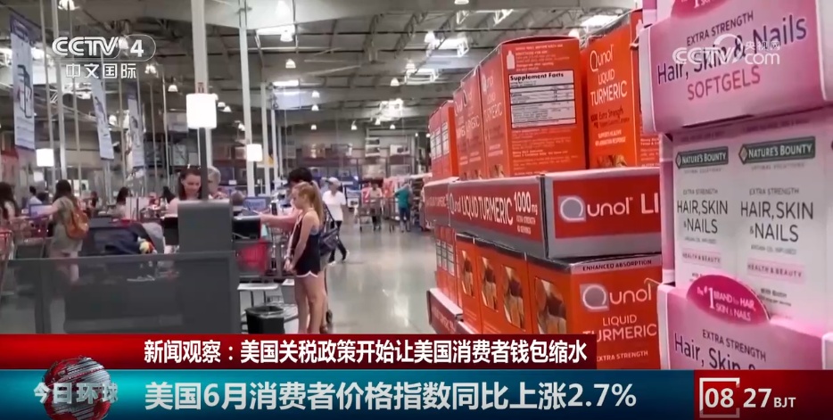 央視網(wǎng)消息:美國政府7月15日公布的6月消費者價格指數(shù)出現(xiàn)2月以來的最大同比漲幅。按照美媒的說法,這表明美國總統(tǒng)特朗普施行的關(guān)稅政策讓美國民眾承壓,普通美國消費者的錢包開始縮水。