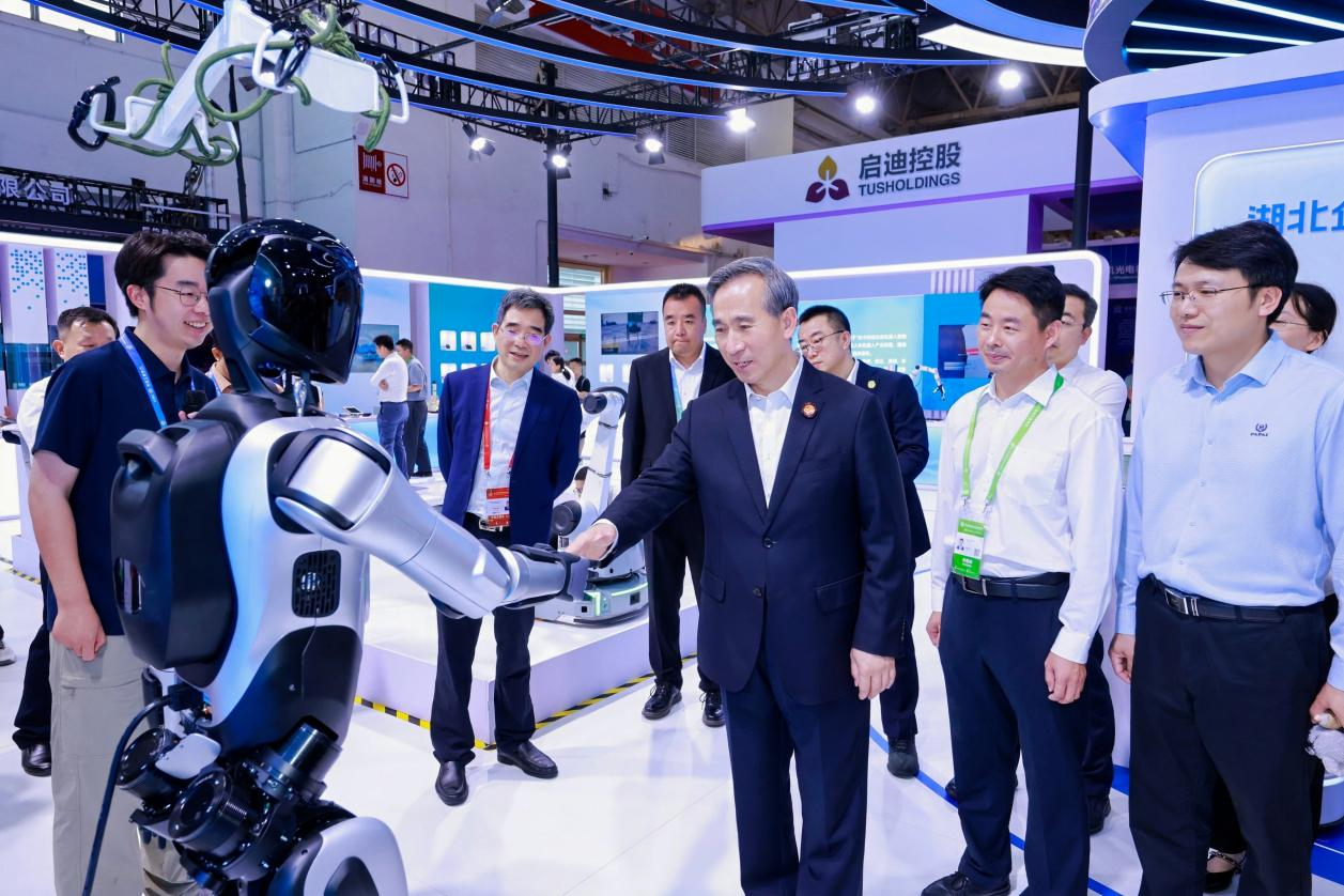 在東土科技(宜昌)有限公司展臺(tái),任鴻斌與搭載鴻道 AI 機(jī)器人操作系統(tǒng)的 “小東” 人形機(jī)器人進(jìn)行了互動(dòng)交流。任鴻斌肯定該系統(tǒng)的“大小腦融合”技術(shù),對(duì)“小東”機(jī)器人表現(xiàn)出的良好語言交互能力表示贊賞,囑咐企業(yè)在開館期間多展示這一互動(dòng)特點(diǎn)。在灝存科技展臺(tái),他觀看了灝存科技的手勢識(shí)別技術(shù)與動(dòng)作捕捉技術(shù)展示,認(rèn)為其技術(shù)在工業(yè)協(xié)作、遠(yuǎn)程醫(yī)療等領(lǐng)域前景廣闊,勉勵(lì)企業(yè)加快機(jī)器學(xué)習(xí)積累與技術(shù)成果轉(zhuǎn)化。