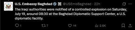 圖片來(lái)源:美國(guó)駐伊拉克巴格達(dá)大使館在其社交媒體賬戶截圖