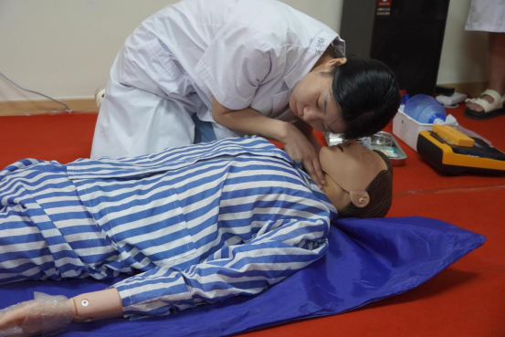 在“健康傳承與使命擔當”環(huán)節(jié)中,創(chuàng)新設置的“家庭健康宣教中心”成為活動亮點。該中心通過“理論 + 實操 + 情景模擬”的全方位培訓模式,讓急救技能真正融入生活。專業(yè)醫(yī)護人員現(xiàn)場示范、分組指導,退役老兵與青年志愿者手把手練習,居民代表認真模仿動作要領?!鞍磯荷疃?5-6 厘米,每分鐘 100-120 次”“開放氣道要注意頭部后仰”…… 實操過程中,軍人的嚴謹細致與急救的專業(yè)規(guī)范完美融合,讓“守護生命”的技能在互動中傳遞。