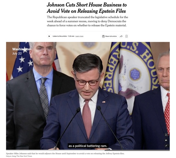 與此同時(shí),議長邁克·約翰遜則在面對媒體追問時(shí)表示,休會屬“正常議程規(guī)劃”,并否認(rèn)任何“壓案”行為。但多方議員,包括自由派與部分保守派人士,均對此解釋表示不滿。