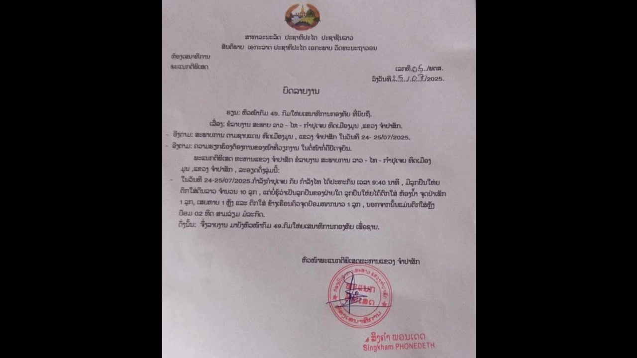 根據(jù)老撾占巴色軍區(qū)司令部的報告,事件發(fā)生在7月24日至25日之間,柬埔寨武裝人員非法越境進入老撾領(lǐng)土,老撾軍方迅速展開行動并與其發(fā)生槍戰(zhàn)。
