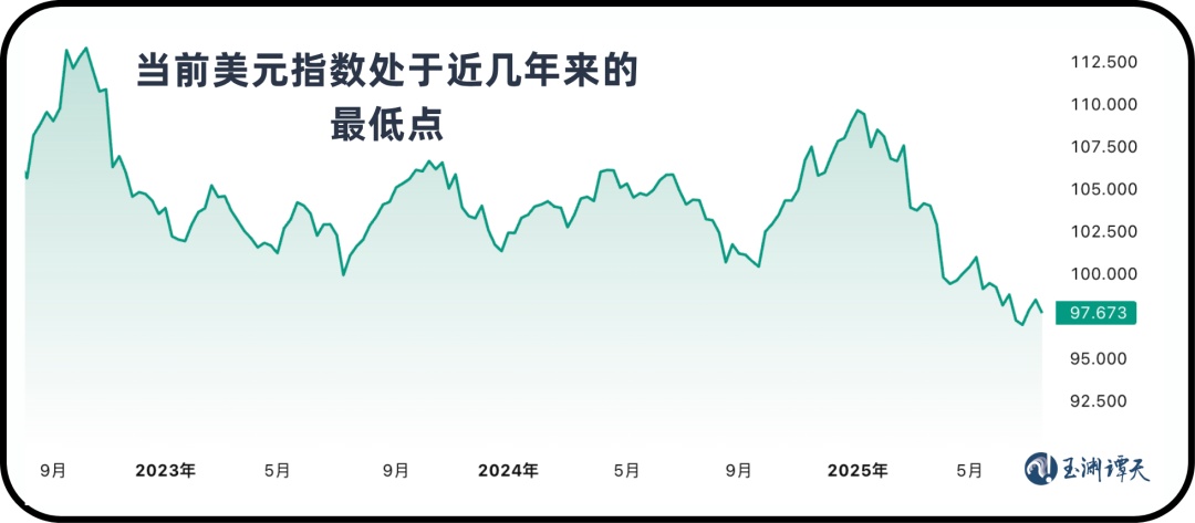 今年以來,美元指數(shù)確實(shí)不斷走弱,已經(jīng)跌至近年來的低點(diǎn)。而支撐其強(qiáng)勢(shì)地位的財(cái)政、科技、股市這三個(gè)元素,也開始顯露疲態(tài)。