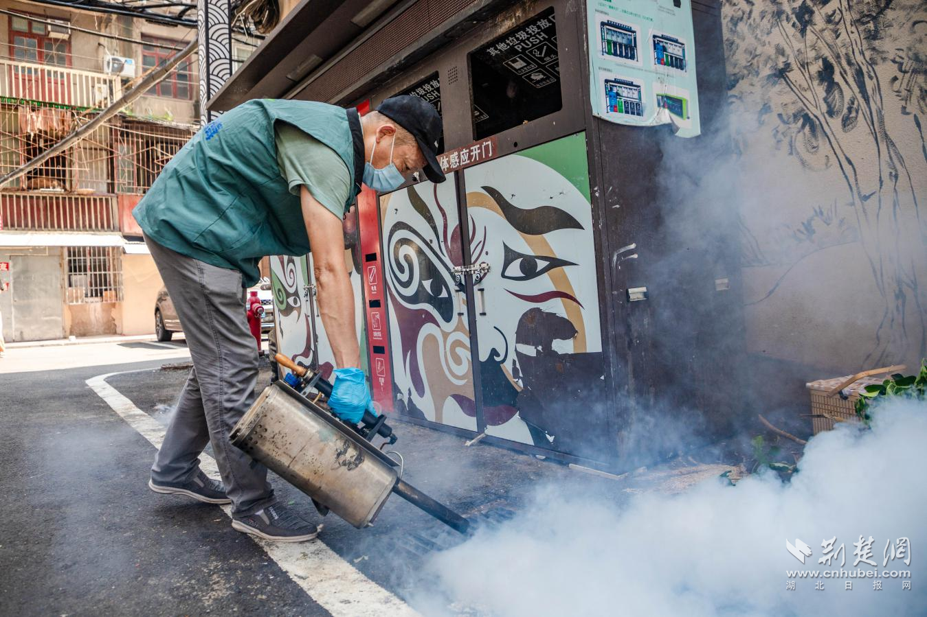 其中江漢區(qū)城管部門聯(lián)合衛(wèi)健部門,組織專業(yè)消殺隊(duì)伍,利用熱煙霧機(jī)對(duì)轄區(qū)公共區(qū)域開展系統(tǒng)性消殺,同時(shí)對(duì)窨井投放滅蚊幼蟲緩釋劑,確保消殺工作高效徹底?!安粌H要消殺成蟲,更要斷了蚊蟲的‘后路’”現(xiàn)場(chǎng)一位工作人員解釋道。洪山區(qū)城管部門則采用“清理+消殺”方式,由工作人員身著防護(hù)服,先使用高壓水槍對(duì)垃圾清運(yùn)車輛、地埋站設(shè)備進(jìn)行深度沖洗,再對(duì)垃圾容器、排水溝、果皮箱等易滋生蚊蟲的部位進(jìn)行細(xì)致噴灑,全方位筑牢夏季防蚊“防護(hù)盾”。