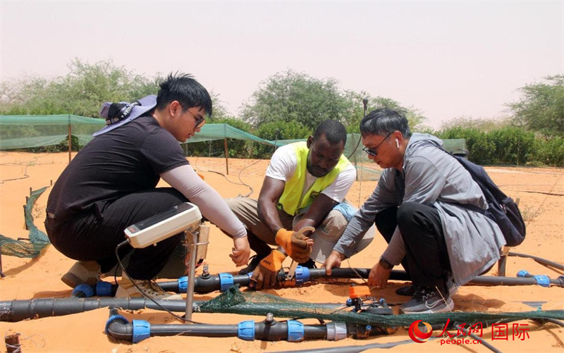 灌溉技術(shù)工人穆罕默德·伊塞勒穆蹲在沙地里,熟練地更換著電磁閥智能控制噴淋閥門(mén)組件——這是他去年就已經(jīng)掌握的技能。他說(shuō):“中國(guó)的同事們來(lái)自中國(guó)的新疆,當(dāng)?shù)刈匀画h(huán)境和我們這里近似。有中國(guó)同事的幫助,我相信這里一定能發(fā)展起綠色種植。”
