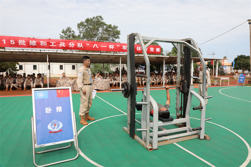 競(jìng)賽設(shè)置了跳繩、臥推、30米*2往返跑、槍支分解結(jié)合等多個(gè)官兵喜聞樂見的項(xiàng)目,不僅豐富了海外任務(wù)期間的文化生活,更激發(fā)了團(tuán)結(jié)協(xié)作、奮勇拼搏的熱情。