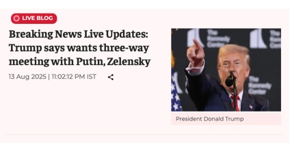 △印度經(jīng)濟(jì)時(shí)報(bào)報(bào)道,特朗普表示希望與普京和澤連斯基舉行三方會(huì)談。