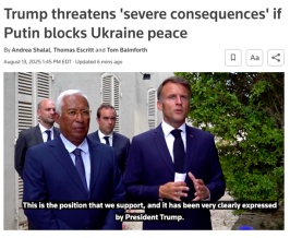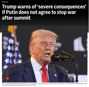 △美聯(lián)社報(bào)道,特朗普警告,如果普京峰會(huì)期間不同意停戰(zhàn),將產(chǎn)生“嚴(yán)重后果”。
