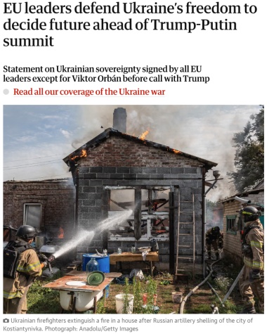 輿論普遍認(rèn)為,這場(chǎng)線上峰會(huì)顯然是歐洲與烏克蘭在阿拉斯加美俄會(huì)晤前的“統(tǒng)一戰(zhàn)線”展示。