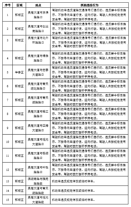 荊楚網(wǎng)(湖北日報網(wǎng))訊(通訊員 丁元中)8月12日,鄂州市公安局交通管理支隊發(fā)布公告稱,為進一步規(guī)范全市道路交通秩序,創(chuàng)建有序、安全、暢通的道路交通環(huán)境,預防和減少道路交通事故,將在轄區(qū)路段新增道路交通技術監(jiān)控設備,對共計15處交通技術監(jiān)控設備設置地點進行公示,將于自公示之日起五個工作日之后對有關交通違法行為進行依法管理。