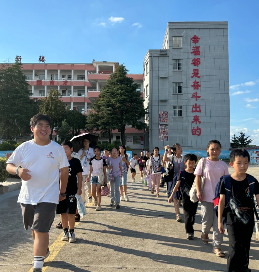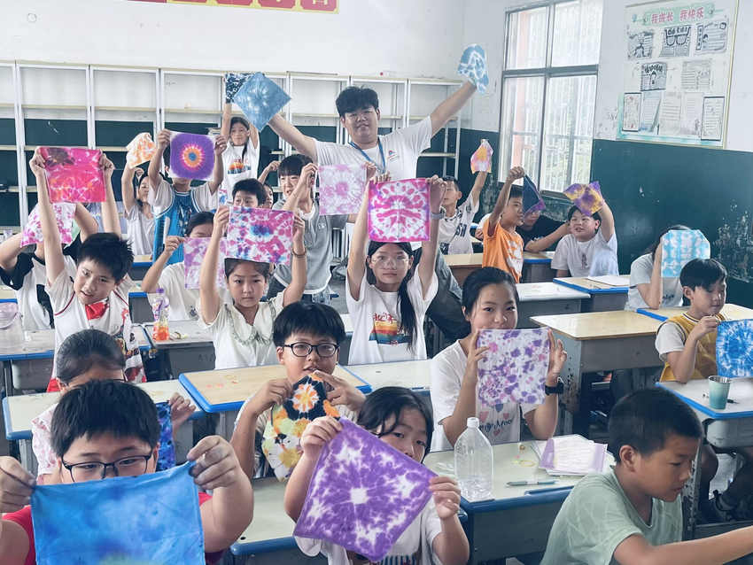 “老師,這是我用扭扭棒做的‘衛(wèi)星’!”東新支教點(diǎn),六年級(jí)學(xué)生王小雨舉著手工作品,眼里閃著光。一個(gè)月來,東新支教點(diǎn)志愿者通過語文“詩歌 + 云海”主題課、數(shù)學(xué)游戲化教學(xué)、非遺扎染工作坊,還有防溺水實(shí)訓(xùn)、趣味運(yùn)動(dòng)會(huì)……25名志愿者為183名學(xué)生搭建了“五育并舉”的成長平臺(tái)。