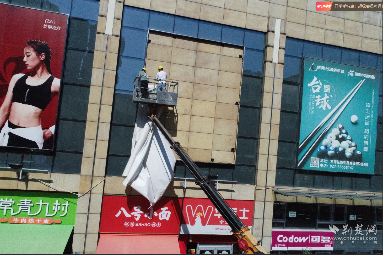 “存在安全隱患的廣告,堅決依法拆除,絕不姑息!”8月19日上午,在常青花園中央商業(yè)街武商量販門前,東西湖區(qū)城管執(zhí)法局市政科相關(guān)負責人介紹說。在現(xiàn)場,施工人員正搭乘高空作業(yè)車,對武商量販外立面的問題廣告進行一一拆除。據(jù)了解,常青花園中央商業(yè)街人流量大、廣告設(shè)置密集,部分廣告牌因長期風吹日曬出現(xiàn)畫面破損等問題,既影響市容環(huán)境,更對市民安全構(gòu)成潛在威脅。