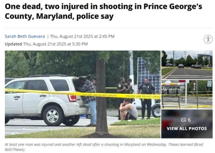 據(jù)報道,槍擊發(fā)生在喬治王子縣一處購物中心附近,一名青少年和一名成年男子中槍。中槍青少年已被送醫(yī)救治,另有一名成年男子中槍,后被當場宣告死亡。
