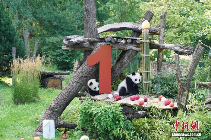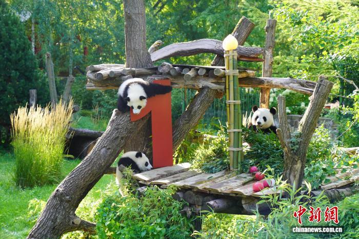 這對(duì)大熊貓雙胞胎是旅德大熊貓“夢(mèng)夢(mèng)”于2024年8月22日誕下的一對(duì)雌性雙胞胎。這是德國第二次迎來大熊貓誕生。它們?cè)趹c生活動(dòng)中調(diào)皮地爬上竹子蠟燭,不時(shí)舔著冰彈珠,還在攀爬架上你追我趕,玩得不亦樂乎。