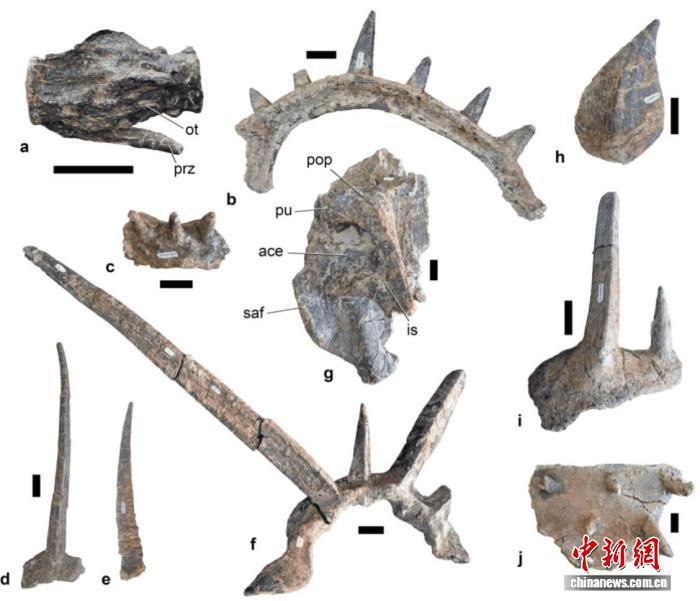 本項研究的甲龍化石部分后顱骨元素和皮膚裝甲(圖片來自論文)。施普林格·自然 供圖