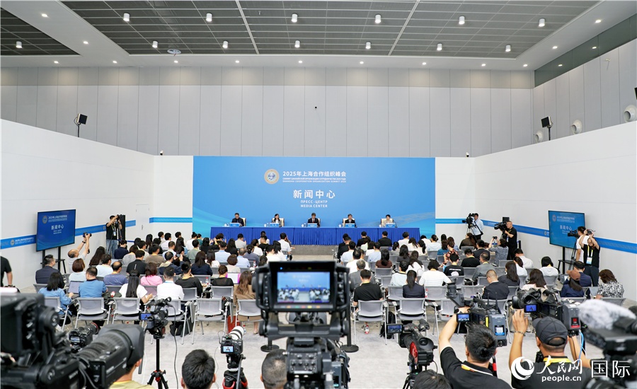 2025年上合組織峰會(huì)首場(chǎng)專場(chǎng)吹風(fēng)會(huì)現(xiàn)場(chǎng)。人民網(wǎng)記者 趙益普攝