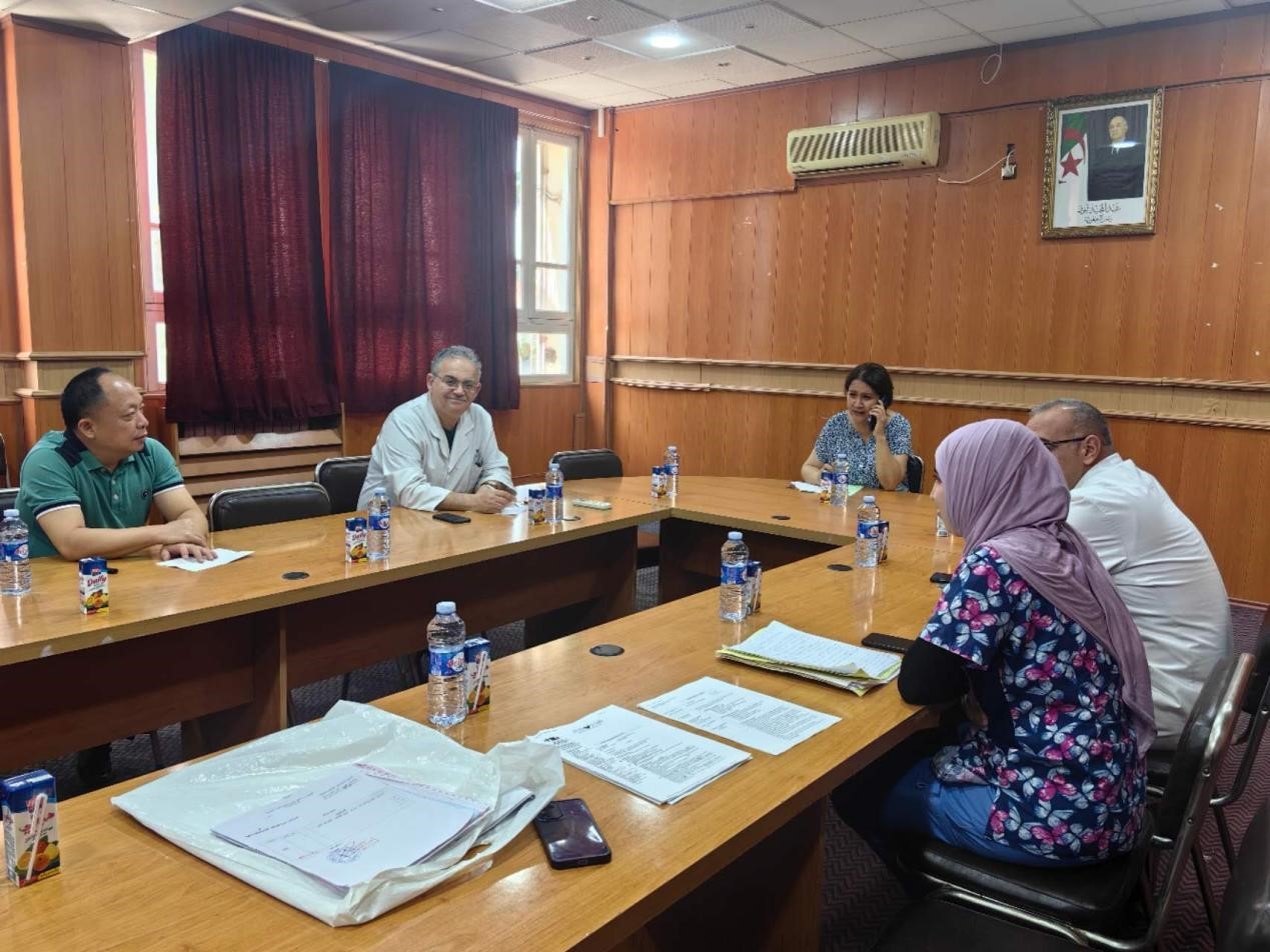 中國醫(yī)生參加當(dāng)?shù)蒯t(yī)院的全院多學(xué)科會(huì)診。 中國援阿爾及利亞醫(yī)療隊(duì)供圖