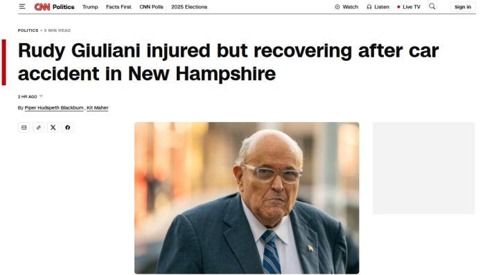 當(dāng)?shù)鼐奖硎?,包括朱利安尼在?nèi)的三人“沒(méi)有生命危險(xiǎn)”。拉古薩表示,朱利安尼目前“精神狀態(tài)良好”。