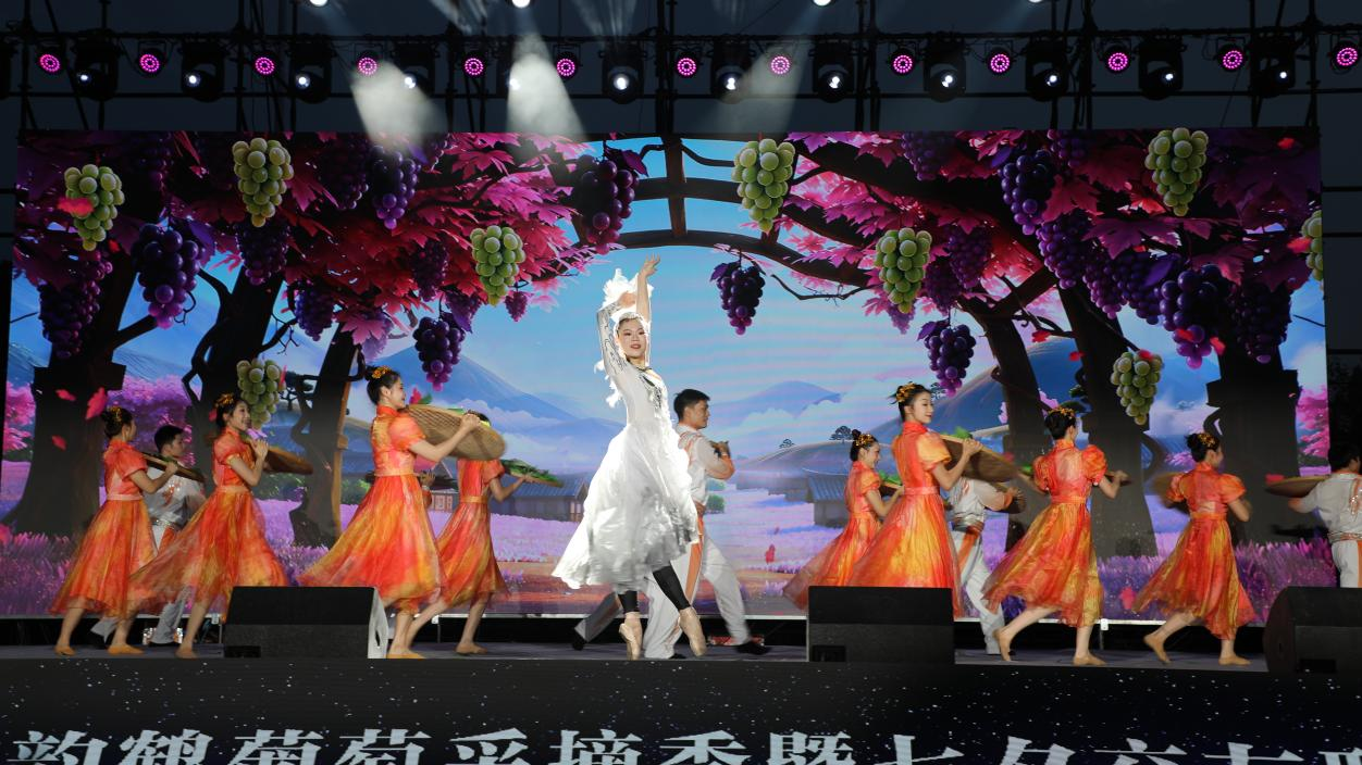 夜幕降臨,采摘季主題晚會(huì)如期上演。湖北省歌劇舞劇院帶來的《鶴舞云天?歡聚葡園》驚艷全場(chǎng),小品、魔術(shù)、抽獎(jiǎng)互動(dòng)環(huán)節(jié)接連登場(chǎng),歌唱家獻(xiàn)唱經(jīng)典曲目,現(xiàn)場(chǎng)氛圍熱烈。情景講述《仙鶴歸來是故鄉(xiāng)》更是生動(dòng)再現(xiàn)了黃灼初返鄉(xiāng)創(chuàng)業(yè)的艱辛與溫暖。