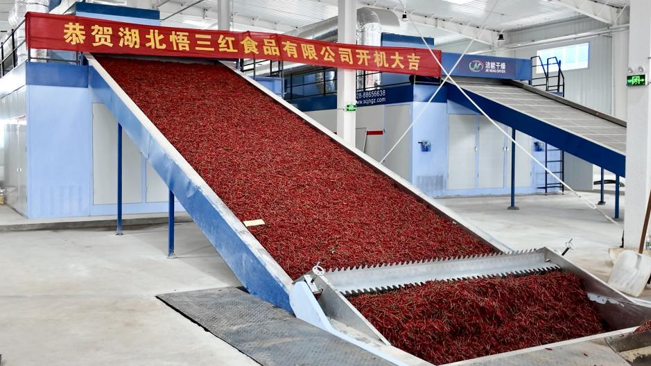 這座今年正式投產(chǎn)、扎根田間地頭的辣椒烘干廠,正以其獨(dú)特的“紅火”勢頭,成為推動(dòng)當(dāng)?shù)剜l(xiāng)村產(chǎn)業(yè)振興、帶動(dòng)農(nóng)民增收的新引擎。烘干廠配備了2條中國第六代智能節(jié)能辣椒烘干生產(chǎn)線,滿負(fù)荷運(yùn)轉(zhuǎn)可日烘鮮椒20萬斤,年加工量超過3萬噸。通過精準(zhǔn)的溫濕度控制技術(shù),工廠能在短時(shí)間內(nèi)將鮮椒高效烘干至標(biāo)準(zhǔn)含水量,極大提升了本地辣椒的附加值,有效解決了鮮椒集中上市時(shí)面臨的銷售難、儲(chǔ)存難問題,讓豐店鎮(zhèn)及周邊地區(qū)的辣椒種植戶吃下了“定心丸”。它不僅延伸了辣椒產(chǎn)業(yè)鏈條,更將季節(jié)性農(nóng)產(chǎn)品轉(zhuǎn)化為具有更高價(jià)值和更長貨架期的商品。