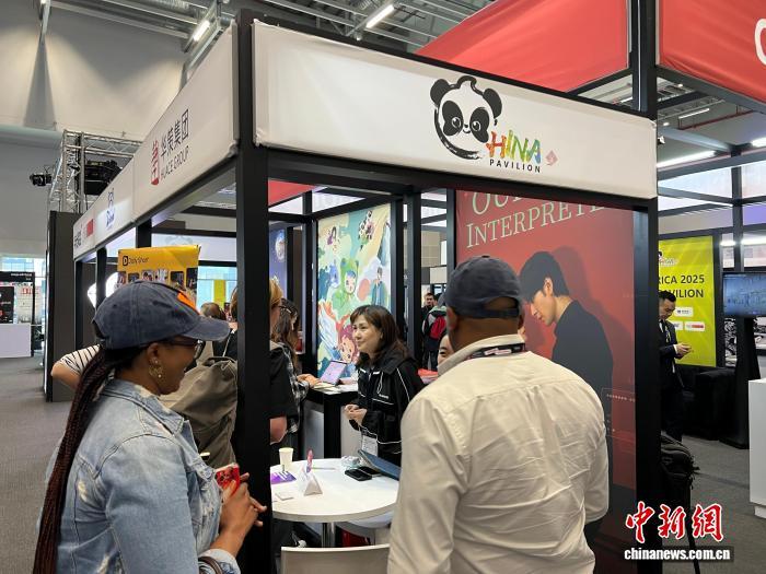 9月1日,南非開普敦,人們?cè)诜侵揠娨暪?jié)(MIP Africa)中國(guó)聯(lián)合展臺(tái)交流?!≈行律缬浾?孫翔 攝