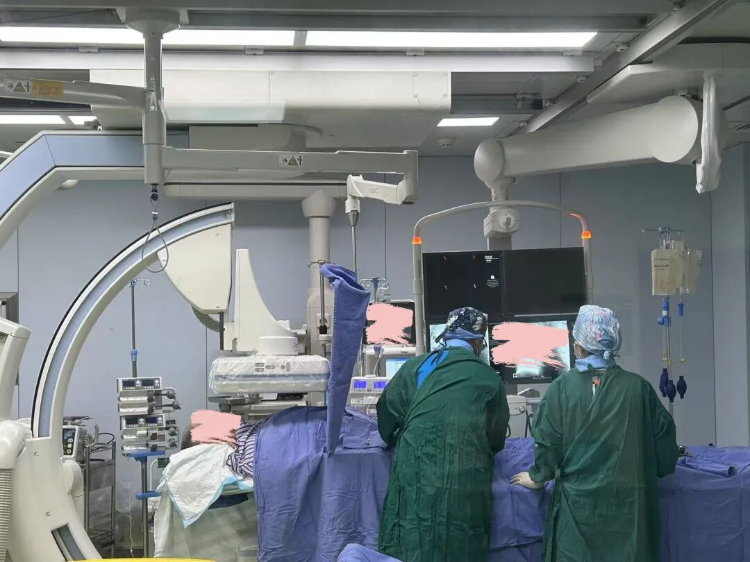面對這一特殊情況,介入團隊立即啟動應(yīng)急預(yù)案,向醫(yī)務(wù)部報備,并通過電話與家屬充分溝通病情和治療方案,在獲得家屬電話授權(quán)同意后,醫(yī)療團隊迅速為夏先生實施腦動脈溶栓術(shù)。整個過程中,麻醉科、重癥醫(yī)學(xué)科專家全程密切監(jiān)測生命體征,隨時準(zhǔn)備應(yīng)對可能出現(xiàn)的病情變化。