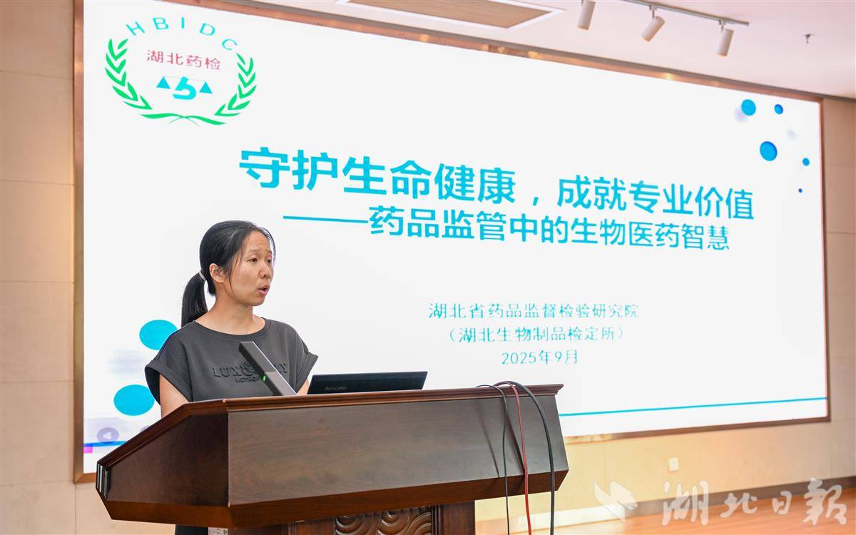 “藥品監(jiān)管三大核心目標(biāo)是什么?”“保證藥品安全、有效和質(zhì)量可控!”9月2日,一場氣氛熱烈的知識問答,拉開了省藥品監(jiān)督檢驗研究院2025年“藥品安全宣傳周”開放日活動的序幕。本次活動以“藥品安全,監(jiān)管為民”為主題,吸引了華中科技大學(xué)同濟(jì)醫(yī)學(xué)院藥學(xué)院生物藥學(xué)基地班40余名師生,與省藥檢院工作人員共同開啟了一場兼具專業(yè)性與趣味性的藥品安全探索之旅。