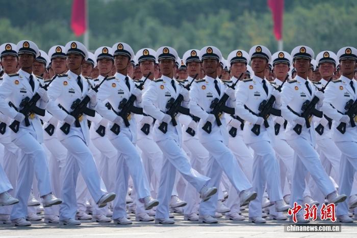 海軍方隊接受檢閱。中新社記者 張煒 攝
