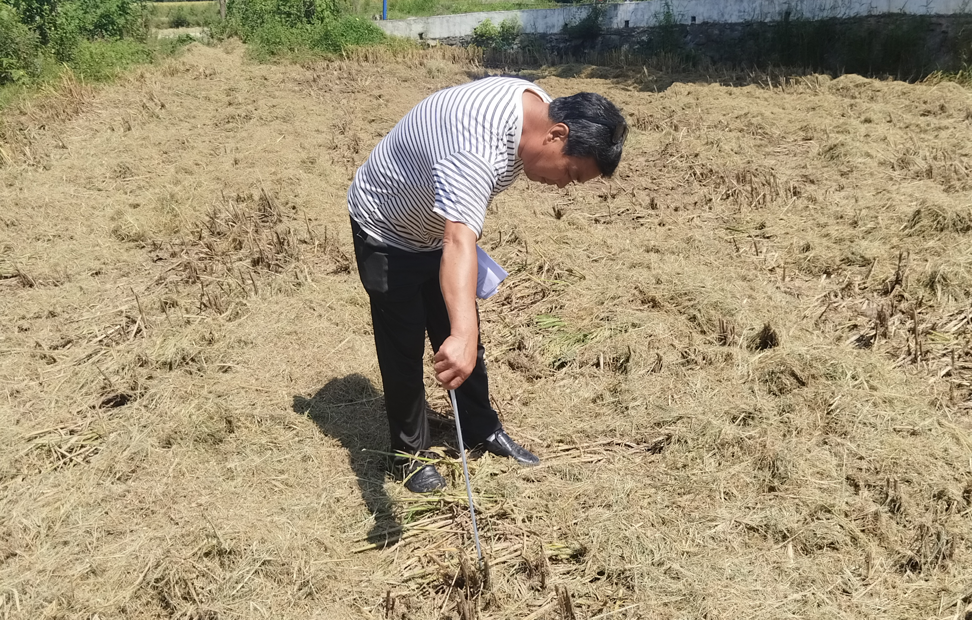 “師傅,停一下!您看這片區(qū)域的茬口明顯偏高,差不多有20公分了,不符合要求,請(qǐng)立即調(diào)整割臺(tái)高度!”一位駐村干部在現(xiàn)場(chǎng)及時(shí)叫停了一臺(tái)收割機(jī),并拿出尺子現(xiàn)場(chǎng)測(cè)量,與農(nóng)機(jī)手溝通調(diào)整。