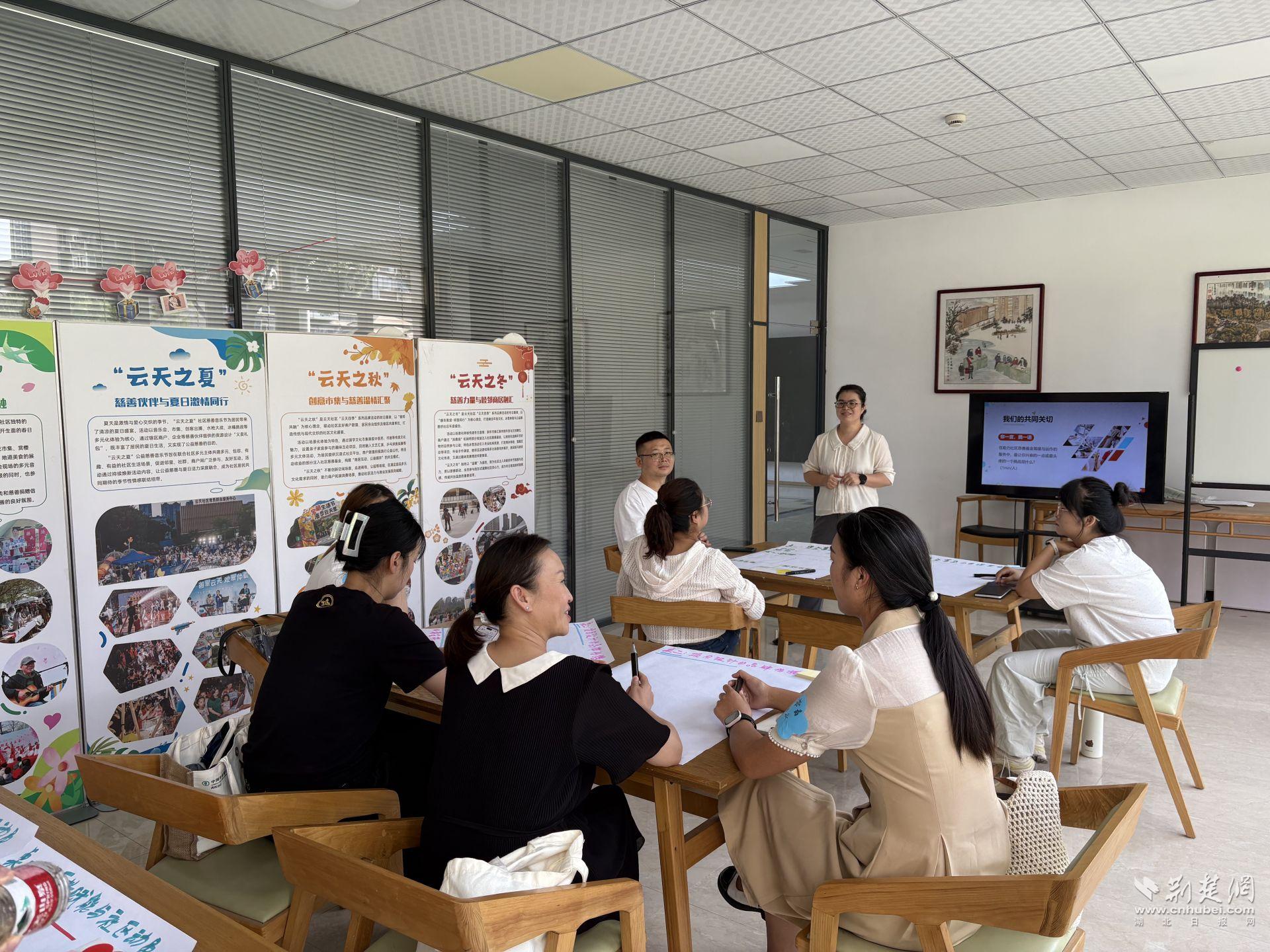 荊楚網(wǎng)(湖北日報(bào)網(wǎng))訊(記者 何婧 通訊員 劉心悅 樊文婷)初秋的午后,武漢市江漢區(qū)萬松街道云天社區(qū)黨群服務(wù)中心里熱鬧非凡。12個(gè)街道社工站的負(fù)責(zé)人圍坐在一起,或比劃,或記錄,圍繞“如何讓社區(qū)慈善基金籌得來、管得好、用得久”展開頭腦風(fēng)暴。