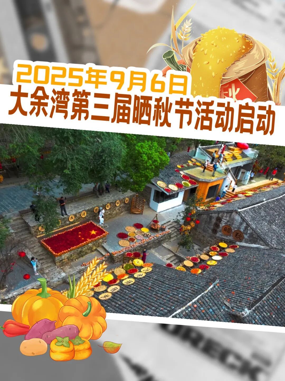 9月6日,這座六百多年的古村落再度迎來一年中最燦爛的時刻——大余灣第三屆曬秋節(jié)盛大啟幕。來大余灣吧!共赴這場與秋天、與鄉(xiāng)愁、與豐收的約會。