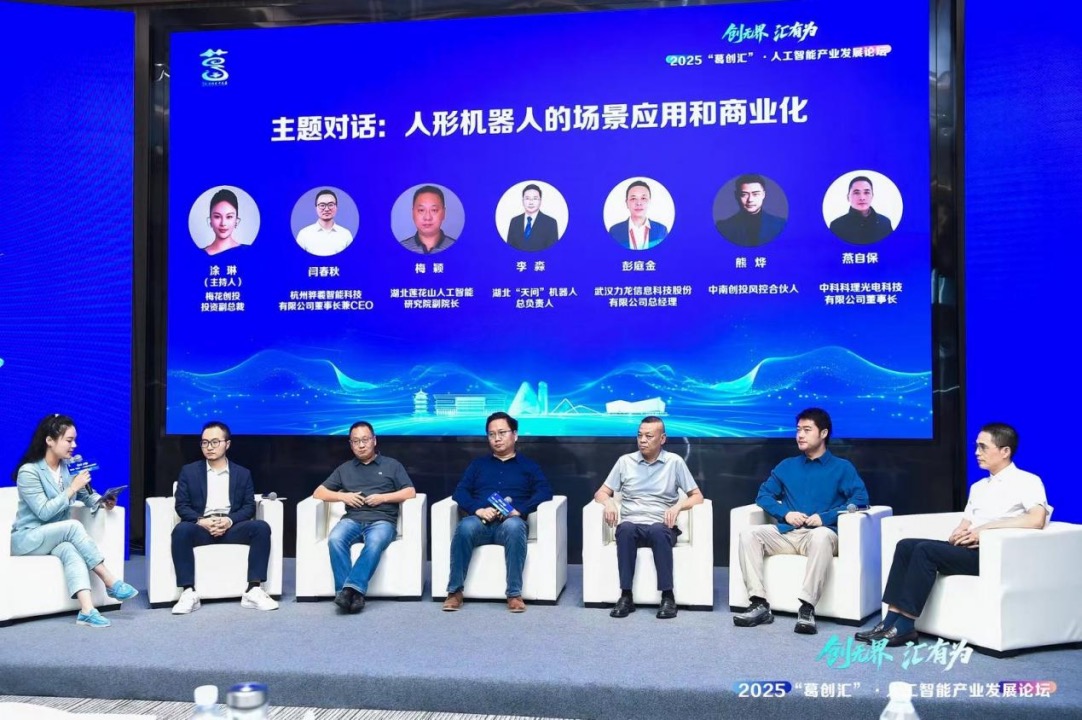 圓桌對(duì)話(huà)由梅花創(chuàng)投副總裁涂琳主持,武漢大學(xué)機(jī)器人學(xué)院李淼教授、湖北蓮花山人工智能研究院副院長(zhǎng)梅穎、力龍信息科技總經(jīng)理彭庭金、中南創(chuàng)投風(fēng)控合伙人熊燁、中科科理光電董事長(zhǎng)燕自保、杭州驊?hù)酥悄芸萍级麻L(zhǎng)兼CEO閆春秋等六位嘉賓,圍繞“人形機(jī)器人的場(chǎng)景應(yīng)用和商業(yè)化”展開(kāi)頭腦風(fēng)暴。嘉賓一致認(rèn)為“技術(shù)迭代+成本管控+場(chǎng)景深耕”是量產(chǎn)落地的關(guān)鍵,葛店在產(chǎn)業(yè)鏈配套和政策支持方面具備先發(fā)優(yōu)勢(shì)。