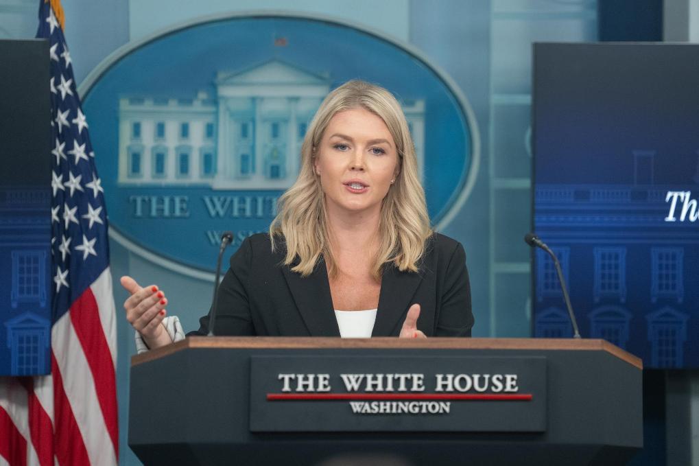 7月7日,在美國(guó)首都華盛頓白宮,白宮新聞發(fā)言人卡羅琳·萊維特出席記者會(huì)。新華社記者胡友松攝