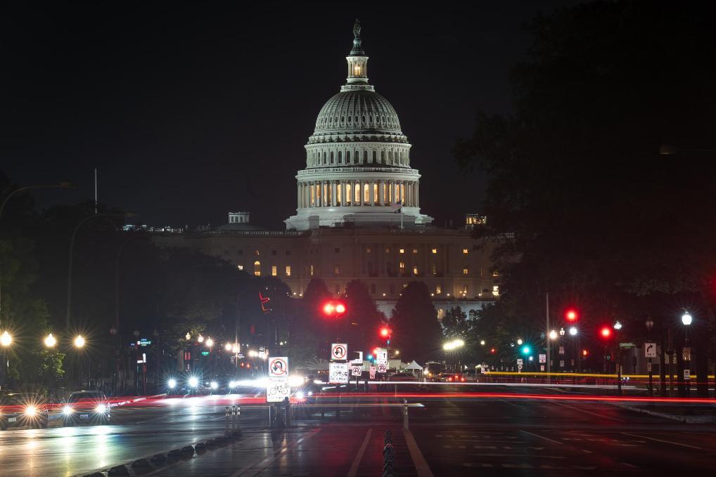 這是7月2日晚在美國(guó)首都華盛頓拍攝的美國(guó)國(guó)會(huì)大廈。新華社記者胡友松攝