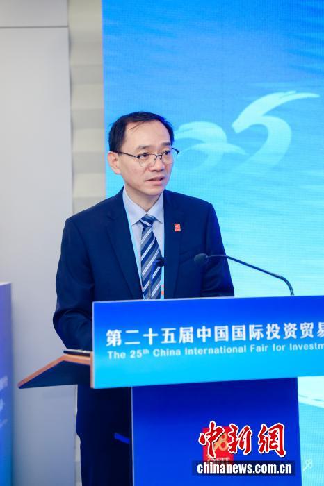 中國(guó)商務(wù)部投資促進(jìn)事務(wù)局局長(zhǎng)劉民強(qiáng)9月8日在廈門(mén)舉行的2025中英健康創(chuàng)新平臺(tái)投資促進(jìn)活動(dòng)致辭。第二十五屆中國(guó)國(guó)際投資貿(mào)易洽談會(huì)組委會(huì) 供圖