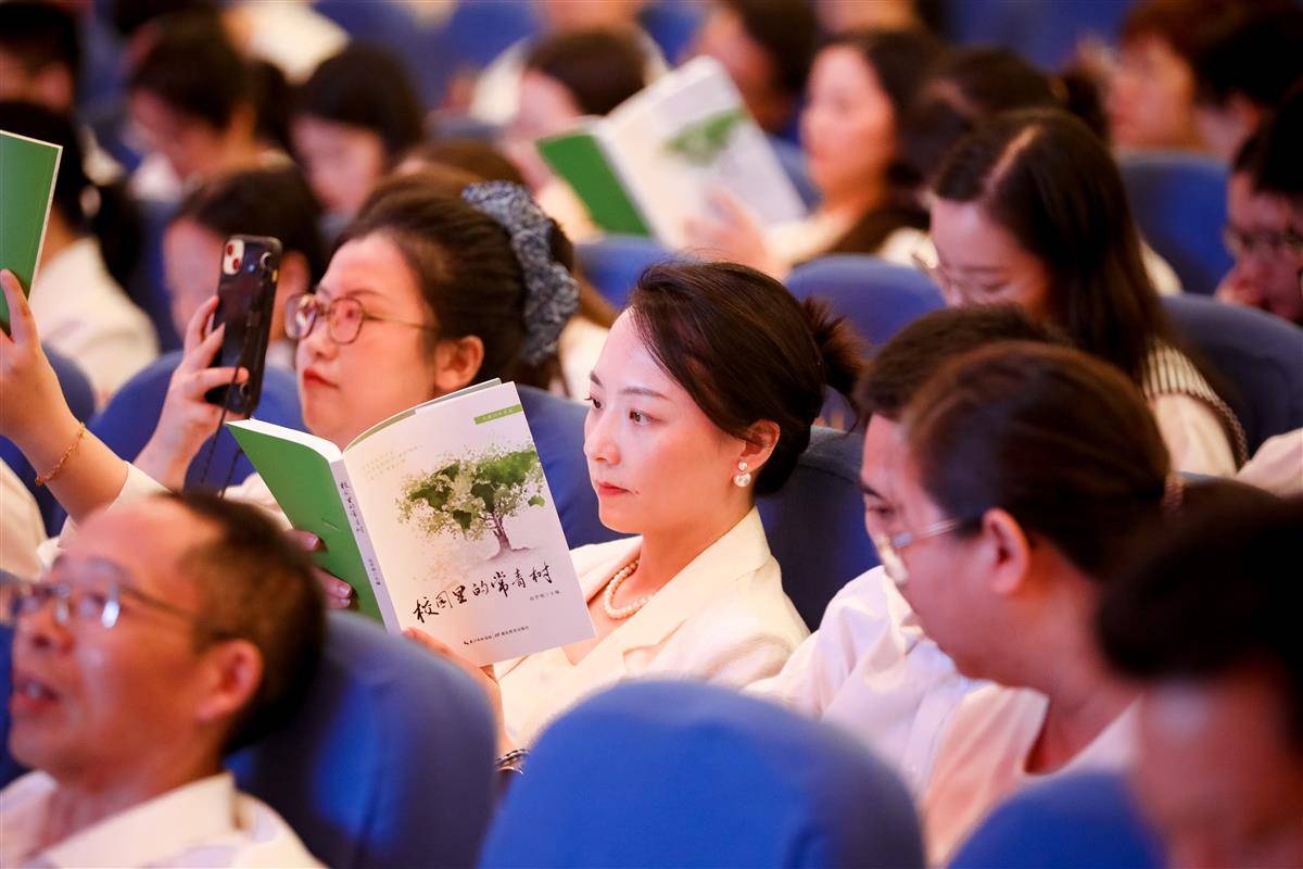 湖北日報訊(通訊員馬亞穎、周鑫) 秋陽溢彩,師道芬芳。9月10日,武漢市光谷實(shí)驗(yàn)中學(xué)《校園里的常青樹》(第二輯)新書首發(fā)儀式在問道樓報告廳隆重舉行。全校教師歡聚一堂,以新書發(fā)布的形式慶祝屬于教育工作者的節(jié)日。2016年,武漢光谷實(shí)驗(yàn)中學(xué)首提“常青精神”,鼓勵教師終身從教,矢志不渝。2020年將16名從教30年的教師的教育人生故事匯編成《校園里的常青樹》(第一輯),成為了學(xué)校寶貴的精神財富和高質(zhì)量發(fā)展的蓬勃力量。今天,《校園里的常青樹》(第二輯)新書首發(fā),15名從教30年的教師歷經(jīng)10個月的寫作和編校,把他們寶貴的人生閱歷和經(jīng)驗(yàn)?zāi)毘晌淖郑屝@常青樹精神不斷傳承,枝繁葉茂。