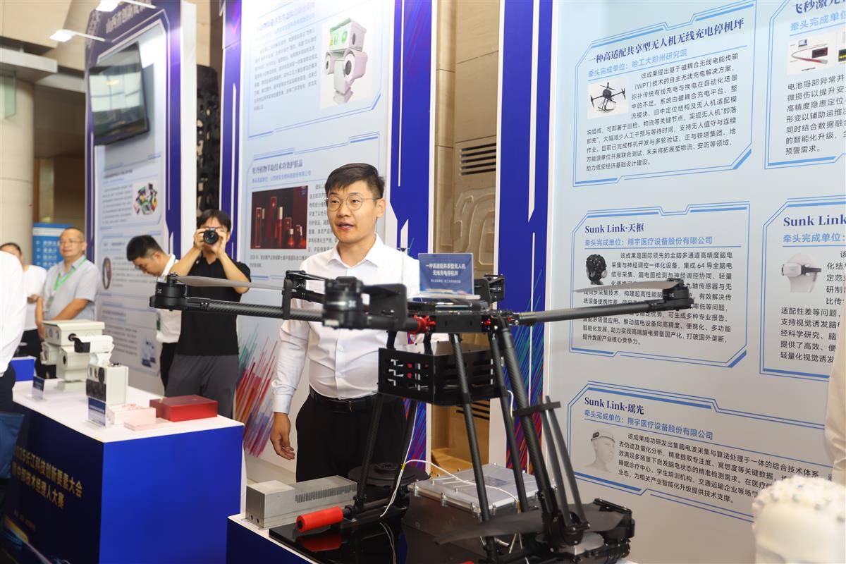 在中部創(chuàng)新成果展區(qū),六省科創(chuàng)成果集中展示,展品科研水平高、技術領域廣,涉及領域包括人工智能、新材料、高端裝備制造、新一代信息技術、生物醫(yī)藥、現代農業(yè)等領域。山西的“智能健康監(jiān)測預警手表技術”“小動物防避共生生態(tài)綜合防治系統(tǒng)”等展品備受關注;河南的“無人機無線充電停機坪技術”和“鄭麥1860”品種等成果引人矚目;安徽的“導航避障型32線激光雷達設備”和“金剛石量子傳感器等前沿裝備”讓大家看到了安徽科技力量;湖南的“亞納米離子束超精密拋光設備”和“高性能負碳無機涂料”等技術盡顯湖南科技實力;江西的“高比能固態(tài)電池”和“永磁磁浮軌道交通系統(tǒng)”等技術極具江西特色;湖北的“月面建筑材料——月壤磚”“嫦娥六號月面國旗”“高產高蛋白宜機收玉米”等前沿成果精彩亮相。