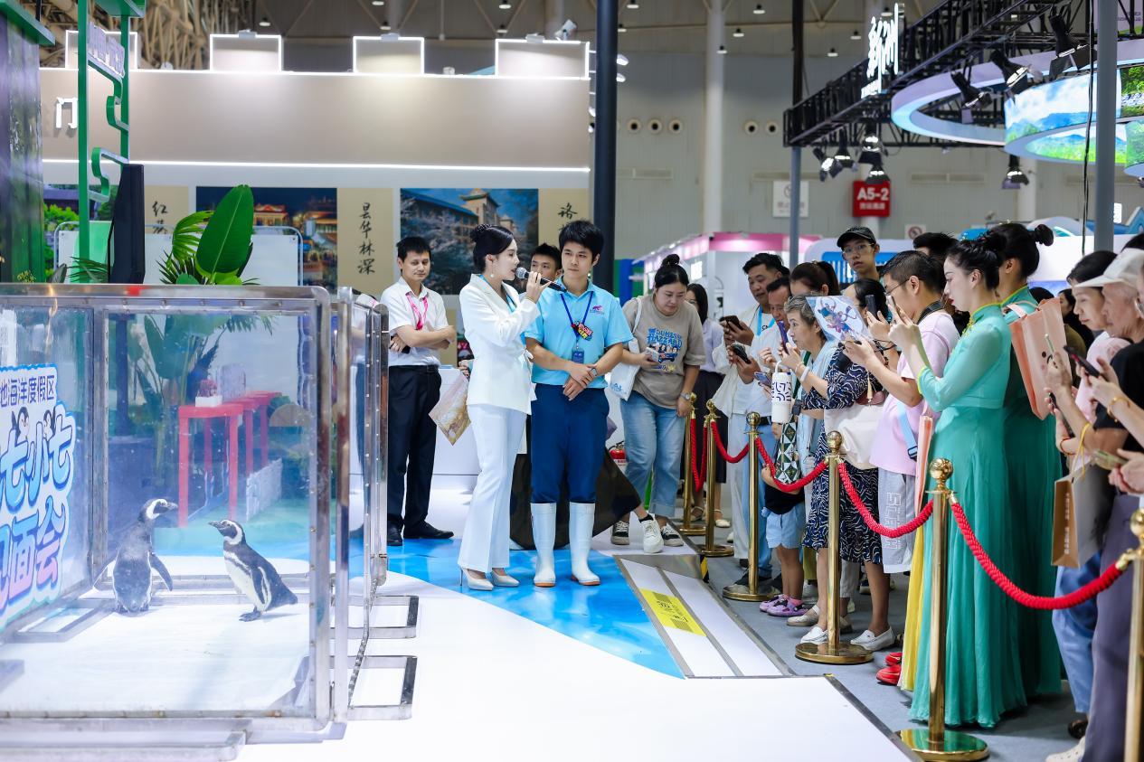2025年9月12日至14日,2025中國文化旅游產(chǎn)業(yè)博覽會在武漢國際博覽中心盛大舉行。海合安武漢極地海洋度假區(qū)作為特邀參展嘉賓,憑借“極地萌寵 + 特色展演”的創(chuàng)新展示形式驚艷全場,尤其是麥氏環(huán)企鵝的首次展會巡游,迅速成為展會焦點。