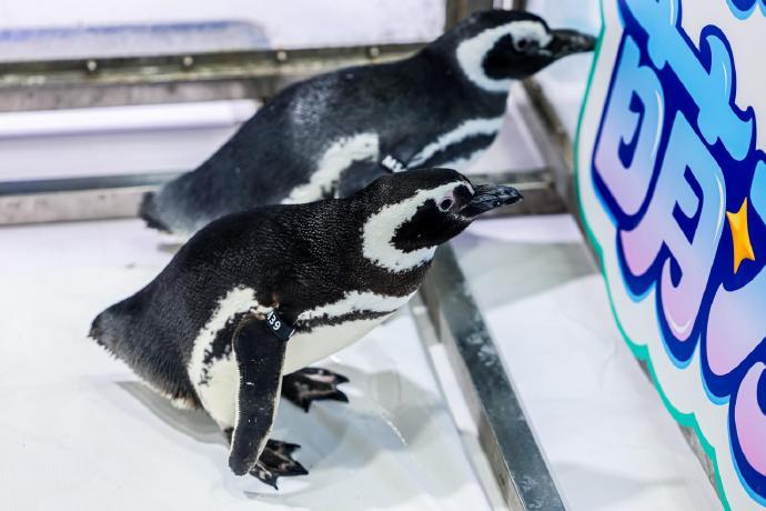 博覽會首日下午,2只體態(tài)優(yōu)雅的麥氏環(huán)企鵝,在專業(yè)保育員的悉心陪伴下,邁著標志性的“搖擺舞步”亮相展區(qū),立即引爆現(xiàn)場氣氛。保育員耐心向觀眾講解企鵝的生活習(xí)性及保護知識,現(xiàn)場互動氛圍熱烈,小朋友們興奮地踮起腳尖,大人們紛紛舉起手機,記錄下這難得的時刻。“沒想到能在展會上看到真企鵝!太驚喜了!”來自長沙的游客王先生激動地說道。