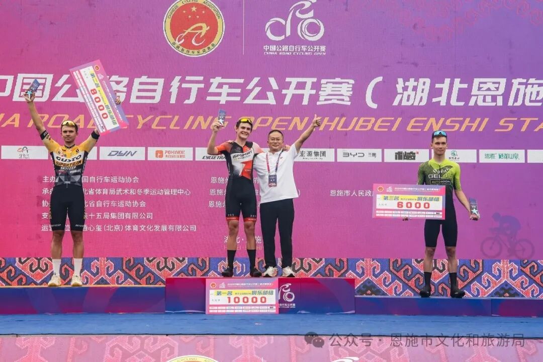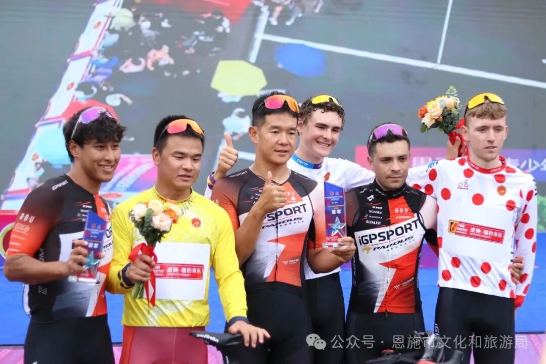 2025年中國公路自行車賽(湖北恩施站)第一賽段所有比賽圓滿結(jié)束,經(jīng)過激烈角逐,跡馳-瑞豹車隊獲得俱樂部組團(tuán)體積分第一名,來自跡馳-瑞豹車隊的VLADISLAY SOZINOV最終憑借強勁的沖刺能力摘得桂冠,被授予白衫,來自GUSTO SUPERTEAM車隊的VITALII和重慶南岸風(fēng)騎捷安特車隊的BLOKHIN IVAN 分獲二、三名;男子精英組、大學(xué)生組、青少年組及女子精英組冠軍分別由來自恒宇單車的馮浩然、任中昊、DYC-晟亦青訓(xùn)選手方宇軒和Bigrock大石魅騎廠隊張婷婷獲得。