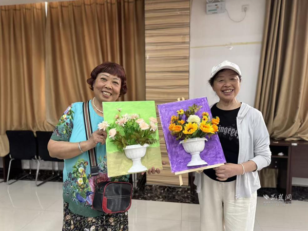 “這旋律一聽就熟!是《沒有共產(chǎn)黨就沒有新中國》!”紅歌競猜環(huán)節(jié),老黨員們爭相搶答,經(jīng)典旋律喚起共同記憶,現(xiàn)場氣氛格外熱烈。隨后的油畫創(chuàng)作中,大家在老師的指導(dǎo)下手握畫筆、挑選顏料,在畫板上細(xì)細(xì)涂色,并將永生花點(diǎn)綴在畫作中。經(jīng)過數(shù)小時(shí)的設(shè)計(jì)制作,一幅幅獨(dú)具創(chuàng)意的立體畫在居民們手中誕生。