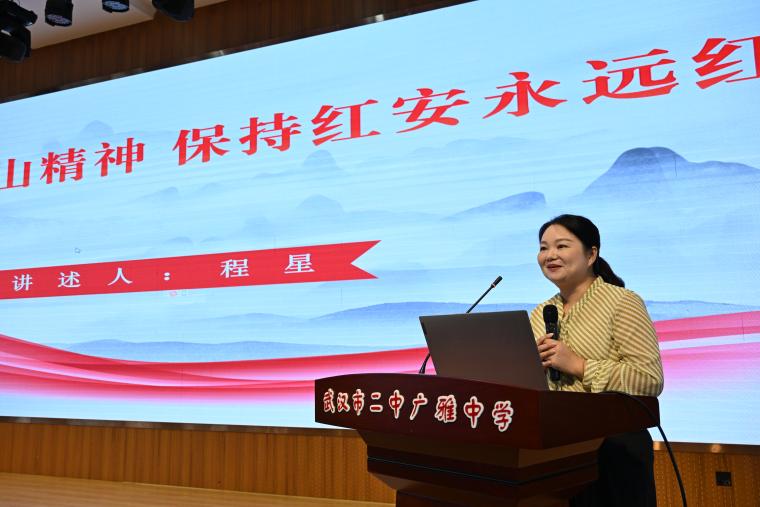 活動(dòng)在莊嚴(yán)肅穆的氛圍中拉開(kāi)帷幕。第十四屆全國(guó)人大代表、黃麻起義和鄂豫皖蘇區(qū)紀(jì)念園游客接待中心副主任程星同志帶來(lái)專(zhuān)題宣講。結(jié)合十七年深耕紅色文化的實(shí)踐,程星以豐富史料為基、鮮活案例為引,系統(tǒng)解讀習(xí)近平總書(shū)記關(guān)于大別山精神的重要論述,深刻闡釋“堅(jiān)守信念鑄忠魂、緊跟黨走踐初心、顧全大局顯擔(dān)當(dāng)、團(tuán)結(jié)奮斗創(chuàng)偉業(yè)、勇當(dāng)前鋒爭(zhēng)先鋒、不勝不休礪志氣”的精神內(nèi)核,贏得師生陣陣掌聲。