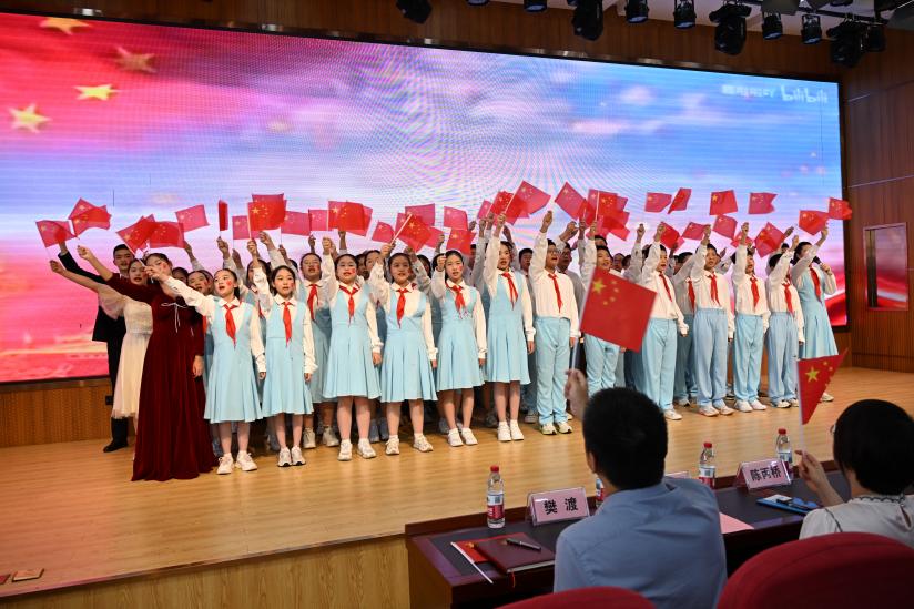 “祖國(guó)啊,祖國(guó),我深深地愛(ài)著我的祖國(guó)!”,二中廣雅中學(xué)的師生帶來(lái)的沉浸式歌舞朗誦《歌唱祖國(guó)》,將活動(dòng)推向高潮,他們用少年之聲與歷史回響隔空對(duì)話(huà),點(diǎn)燃全場(chǎng)愛(ài)國(guó)熱情。