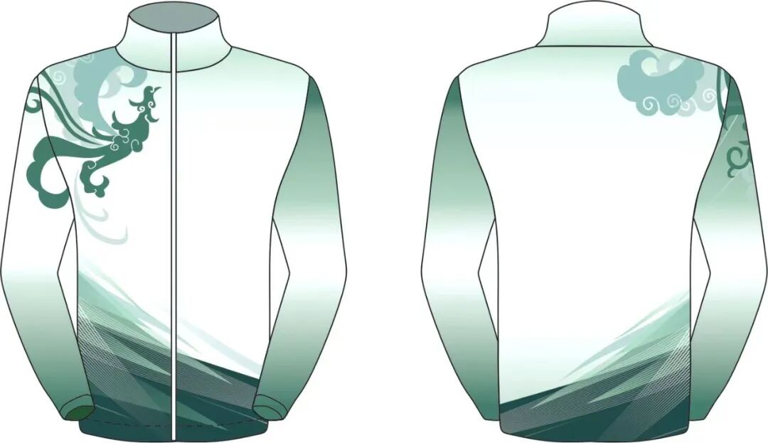 以白色為基色,運(yùn)用淺綠、翠綠、墨綠不同層次的綠色,呈現(xiàn)鳳鳥“展翅騰飛” 的視覺遞進(jìn)感。展現(xiàn)了楚文化的獨(dú)特精神內(nèi)涵,寓意湖北的繁榮昌盛、技能騰飛的美好未來。