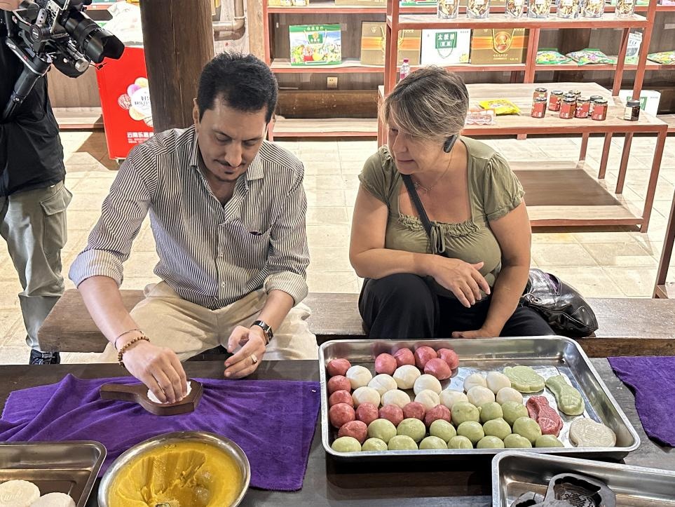體驗了制作工序后,費薩爾·馬利克興奮地說:“這是我第一次見到這樣的制作工藝,讓我感到非常驚訝!做好的大米粑粑再加上一款口味獨特的辣醬,味道非常值得嘗試?!?/p>