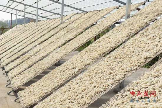 而這樣的環(huán)境催生了“豆絲”這一鄂州傳統(tǒng)美食。除了大米外,綠豆、黃豆、葛根等“豆絲”原材料生長(zhǎng)在山溝、溪邊、林中?!懊磕耆攵?,幾乎家家起大灶開始制作豆絲,風(fēng)干后可以留存整個(gè)冬天。”周楊介紹。