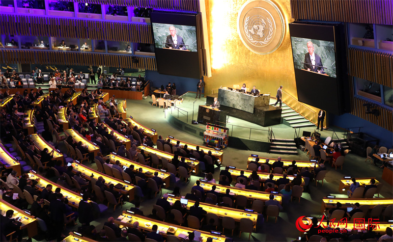 當(dāng)?shù)貢r(shí)間9月22日,在聯(lián)合國(guó)大會(huì)堂,聯(lián)合國(guó)成立八十周年高級(jí)別紀(jì)念活動(dòng)舉行。人民網(wǎng)記者 李志偉攝