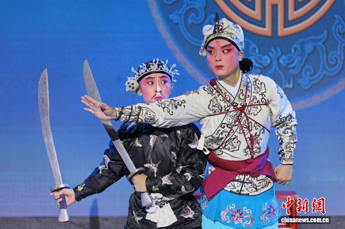 9月23日晚,浙江婺劇團雅加達專場上演。圖為折子戲《三岔口》。中新社記者 李志全 攝